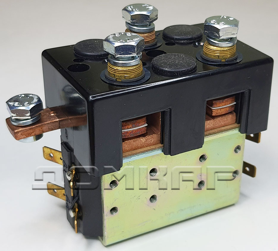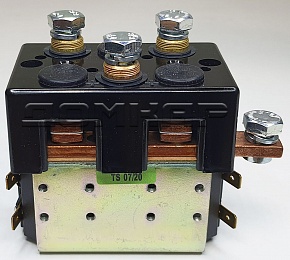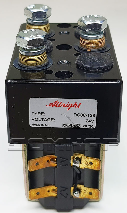 Контактор реверсивного типа DC88 Albright был разработан для нагрузок постоянного тока, в частности электродвигателей, используемых на электромобилях, штабелерах, погрузчиках, гольфкарах. Контактор DC88 представляет собой моноблочную конструкцию, в результате чего получается компактная конструкция, совместимая с современными электронными системами управления. Разработанный как для прерывистых, так и для непрерывных нагрузок, контактор DC88 подходит для коммутации резистивных, емкостных и индуктивных нагрузок. Основная контактная цепь, предназначенная для реверсирования двигателя, имеет встроенную защиту от сбоев, так что при одновременном включении обеих катушек контактная схема является разомкнутой. Контактор DC88 имеет основные контакты с двойным размыканием и контактные наконечники из серебряного сплава, которые устойчивы к сварке, износостойки и обладают превосходной проводимостью. Основные стержневые клеммы контактора DC88 размером M8 могут быть сконфигурированы различными способами в зависимости от области применения. Соединения катушек осуществляются с помощью лопаток диаметром 6,3 мм, а монтаж осуществляется с помощью прилагаемого кронштейна и может быть горизонтальным или вертикальным.