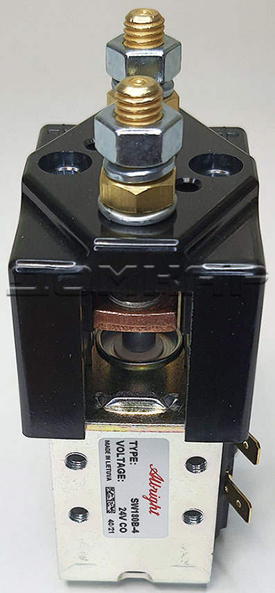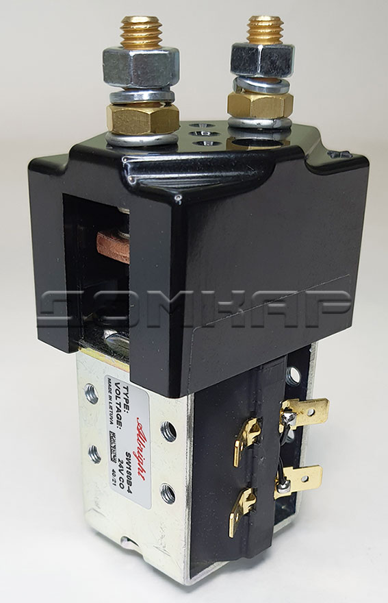 Контактор SW180B-4Albright был разработан для нагрузок постоянного тока, в частности для электродвигателей, используемых на электромобилях, штабелерах, погрузчиках, гольфкарах и т.п. Разработанный как для прерывистых, так и для непрерывных нагрузок, контактор SW180B-4 подходит для коммутации резистивных, емкостных и индуктивных нагрузок. Контактор SW180B-4 Albright оснащен однополюсными основными контактами с двойным размыканием и наконечниками из серебряного сплава, которые устойчивы к сварке, износостойки и обладают превосходной проводимостью. Контактор SW180B-4 имеет основные клеммы со шпильками M8 и 6,3-миллиметровые соединения лопастных катушек. Он может монтироваться с помощью резьбовых отверстий M5 или монтажных кронштейнов – как в комплекте, так и в виде отдельных элементов. Монтаж может быть горизонтальным или вертикальным, при вертикальном положении контактные шпильки M8 должны быть направлены вверх.