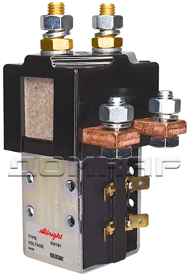 Контактор SW181 Albright был разработан для нагрузок постоянного тока, в частности для электродвигателей, используемых на электромобилях, штабелерах, погрузчиках, гольфкарах и т.п. Разработанный как для прерывистых, так и для непрерывных нагрузок, контактор SW181 подходит для коммутации резистивных, емкостных и индуктивных нагрузок. Контактор SW181 Albright оснащен однополюсными основными контактами с двойным броском и двойным размыканием с наконечниками из серебряного сплава, которые устойчивы к сварке, износостойки и обладают превосходной проводимостью. Контактор SW181 имеет основные клеммы со шпильками M8 и 6,3-миллиметровые соединения лопастных катушек. Он может монтироваться с помощью резьбовых отверстий M4 или монтажных кронштейнов – как в комплекте, так и в виде отдельных элементов. Монтаж может быть горизонтальным или вертикальным, при вертикальном положении контактные шпильки M8 должны быть направлены вверх. Пожалуйста, обратите внимание, что нормально замкнутые контакты не подходят для создания и размыкания нагрузки.