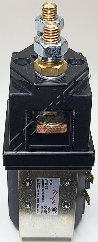 Контактор SW200-1 Albright был разработан для нагрузок постоянного тока, в частности для электродвигателей, используемых на электромобилях, штабелерах, ричтраках, погрузчиках, гольфкарах и т.п. Разработанный как для прерывистых, так и для непрерывных нагрузок, контактор SW200-1 подходит для коммутации резистивных, емкостных и индуктивных нагрузок. Контактор SW200-1 Albright оснащен однополюсными основными контактами с двойным размыканием и наконечниками из серебряного сплава, которые устойчивы к сварке, износостойки и обладают превосходной проводимостью. Контактор SW200-1 имеет основные клеммы со шпильками M10 и 6,3-миллиметровые соединения лопастных катушек. Он может монтироваться с помощью резьбовых отверстий M5 или монтажных кронштейнов – как в комплекте, так и в виде отдельных элементов. Монтаж может быть горизонтальным или вертикальным, при вертикальном положении контактные шпильки M10 должны быть направлены вверх.
