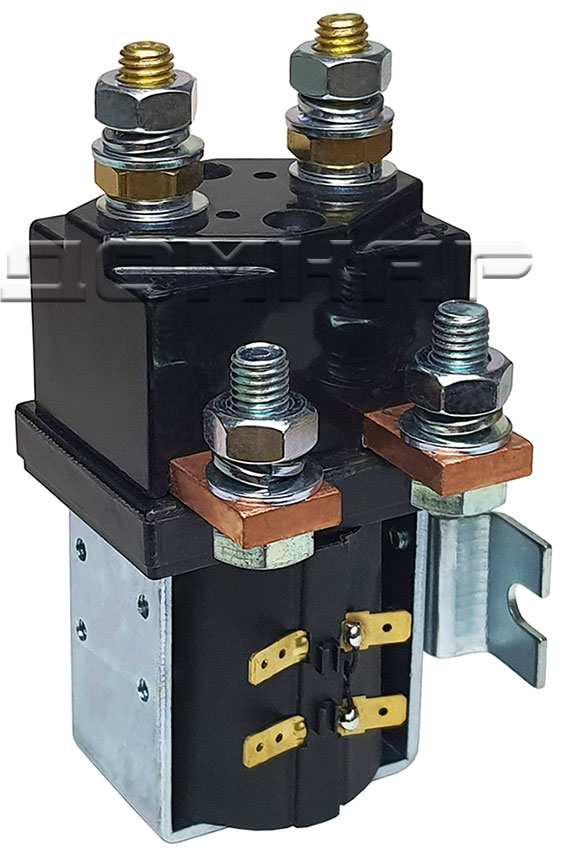 Контактор SW201 был разработан для нагрузок постоянного тока, в частности для электродвигателей, используемых на электромобилях, штабелерах, ричтраках, погрузчиках, гольфкарах и т.п. Контактор SW201 разработан как для прерывистого, так и для непрерывного использования, подходит для коммутации резистивных, емкостных и индуктивных нагрузок. Прерывистый ток - размыкание и замыкание на нагрузке при частом переключении (приводит к увеличению контактного сопротивления). Непрерывный ток - не требуется переключение нагрузки или оно требуется нечасто (поддерживается более низкое контактное сопротивление). Контактор SW201 оснащен однополюсными основными контактами с двойным замыканием и наконечниками из серебряного сплава, которые устойчивы к сварке, износостойки и обладают превосходной проводимостью. Контактор SW201 оснащен основными клеммами-шпильками M10 и соединения лопастных катушек диаметром 6,3 мм. Контактор SW201 может монтироваться с помощью резьбовых отверстий M4 или монтажных кронштейнов – либо в комплекте, либо в виде отдельных элементов. Монтаж может быть горизонтальным или вертикальным, при вертикальном положении контактные шпильки M10 должны быть направлены вверх.