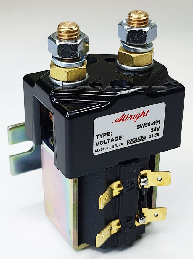 Контактор SW80 Albright был разработан для нагрузок постоянного тока, включая электродвигатели, используемые на электромобилях, штабелерах, погрузчиках, гольфкарах, а также для телекоммуникаций и распределения электроэнергии. Разработанный как для прерывистых, так и для непрерывных нагрузок, контактор SW80 подходит для коммутации резистивных, емкостных и индуктивных нагрузок. Контактор SW80 Albright оснащен однополюсными основными контактами с двойным размыканием с наконечниками из серебряного сплава, которые устойчивы к сварке, износостойки и обладают превосходной проводимостью. Контактор SW80 имеет основные клеммы со шпильками M8 и 6,3-миллиметровые соединения лопастных катушек. Монтаж осуществляется с помощью резьбовых отверстий M4 или монтажных кронштейнов, которые поставляются либо в комплекте, либо в виде отдельных элементов. Монтаж может быть горизонтальным или вертикальным, при вертикальном положении контактные шпильки M8 должны быть направлены вверх.