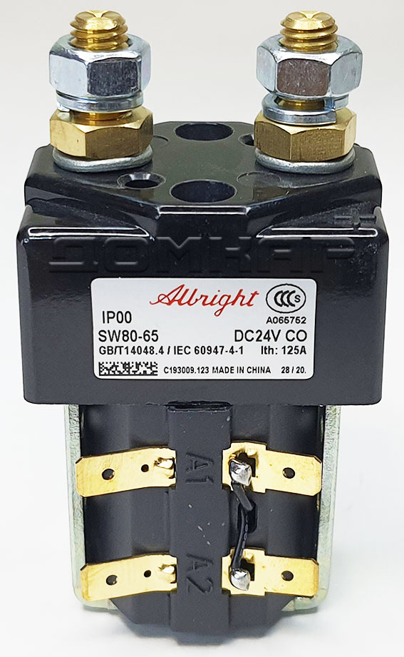 Контактор SW80-65 Albright был разработан для нагрузок постоянного тока, включая электродвигатели, используемые на электромобилях, штабелерах, погрузчиках, гольфкарах, а также для телекоммуникаций и распределения электроэнергии. Разработанный как для прерывистых, так и для непрерывных нагрузок, контактор SW80-65 подходит для коммутации резистивных, емкостных и индуктивных нагрузок. Контактор SW80-65 Albright оснащен однополюсными основными контактами с двойным размыканием с наконечниками из серебряного сплава, которые устойчивы к сварке, износостойки и обладают превосходной проводимостью. Контактор SW80-65 имеет основные клеммы со шпильками M8 и 6,3-миллиметровые соединения лопастных катушек. Монтаж осуществляется с помощью резьбовых отверстий M4 или монтажных кронштейнов, которые поставляются либо в комплекте, либо в виде отдельных элементов. Монтаж может быть горизонтальным или вертикальным, при вертикальном положении контактные шпильки M8 должны быть направлены вверх.