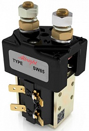 Контактор SW85 Albright был разработан для нагрузок постоянного тока, в частности для электродвигателей, используемых на электромобилях, штабелерах, погрузчиках, гольфкарах и на электротранспорте для аэропортов. Разработанный как для прерывистых, так и для непрерывных нагрузок, контактор SW85 подходит для коммутации резистивных, емкостных и индуктивных нагрузок. Контактор SW85 Albright оснащен однополюсными основными контактами с двойным размыканием с наконечниками из серебряного сплава, которые устойчивы к сварке, износостойки и обладают превосходной проводимостью. Контактор SW85 имеет основные клеммы со шпильками M8 и 6,3-миллиметровые соединения лопастных катушек. Монтаж осуществляется с помощью резьбовых отверстий M4 или монтажных кронштейнов, которые поставляются либо в комплекте, либо в виде отдельных элементов. Монтаж может быть горизонтальным или вертикальным, при вертикальном положении контактные шпильки M8 должны быть направлены вниз. Пожалуйста, обратите внимание, что нормально замкнутые контакты не подходят для создания и размыкания нагрузки.