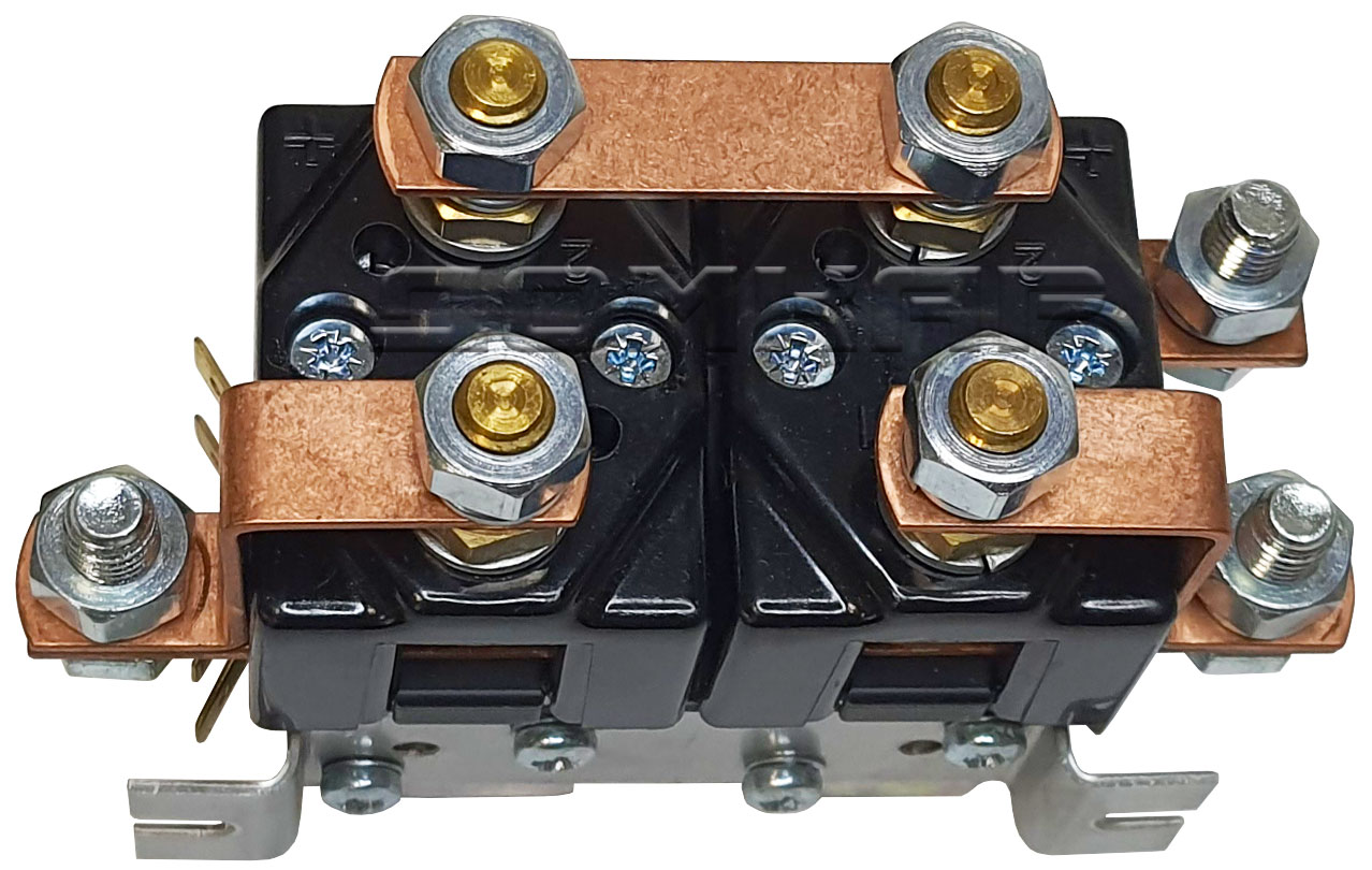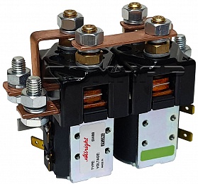 Контактор SW88 Albright был разработан для нагрузок постоянного тока, в частности для электродвигателей, используемых на электромобилях, штабелерах, погрузчиках, гольфкарах и на электротранспорте для аэропортов. Разработанный как для прерывистых, так и для непрерывных нагрузок, контактор SW88 подходит для коммутации резистивных, емкостных и индуктивных нагрузок. Контактор SW88 оснащен однополюсными основными контактами с двойным размыканием с наконечниками из серебряного сплава, которые устойчивы к сварке, износостойки и обладают превосходной проводимостью. Основная контактная цепь контактора SW88, предназначенная для реверсирования электродвигателя, имеет встроенную защиту от сбоев, так что при одновременном включении обеих катушек контактная схема является разомкнутой. Контактор SW88 имеет основные клеммы со шпильками M8 и 6,3-миллиметровые соединения лопастных катушек. Монтируется с помощью прилагаемых кронштейнов, монтаж может быть горизонтальным или вертикальным, при вертикальном положении контактные шпильки M8 должны быть направлены вверх.