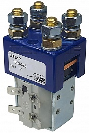 Контакторы серии AFS17 Schaltbau были разработаны для нагрузок постоянного тока, в частности для электродвигателей, используемых на электромобилях, штабелерах, погрузчиках, гольфкарах и т.п. Разработанный как для прерывистых, так и для непрерывных нагрузок, контактор AFS17 подходит для коммутации резистивных, емкостных и индуктивных нагрузок. Контактор AFS17 Schaltbau оснащен двухполюсными основными контактами с двойным размыканием с наконечниками из серебряного сплава, которые устойчивы к сварке, износостойки и обладают превосходной проводимостью. Контакторы имеют компактные размеры и полностью пригодны для обслуживания благодаря наличию полного ассортимента запасных частей. Контактор AFS17 Schaltbau имеет основные клеммы со шпильками M8 и 6,3-миллиметровые соединения лопастных катушек. Он может монтироваться с помощью резьбовых отверстий M4 или монтажных кронштейнов – как в комплекте, так и в виде отдельных элементов. Монтаж может быть горизонтальным или вертикальным, при вертикальном положении контактные шпильки M8 должны быть направлены вверх.
